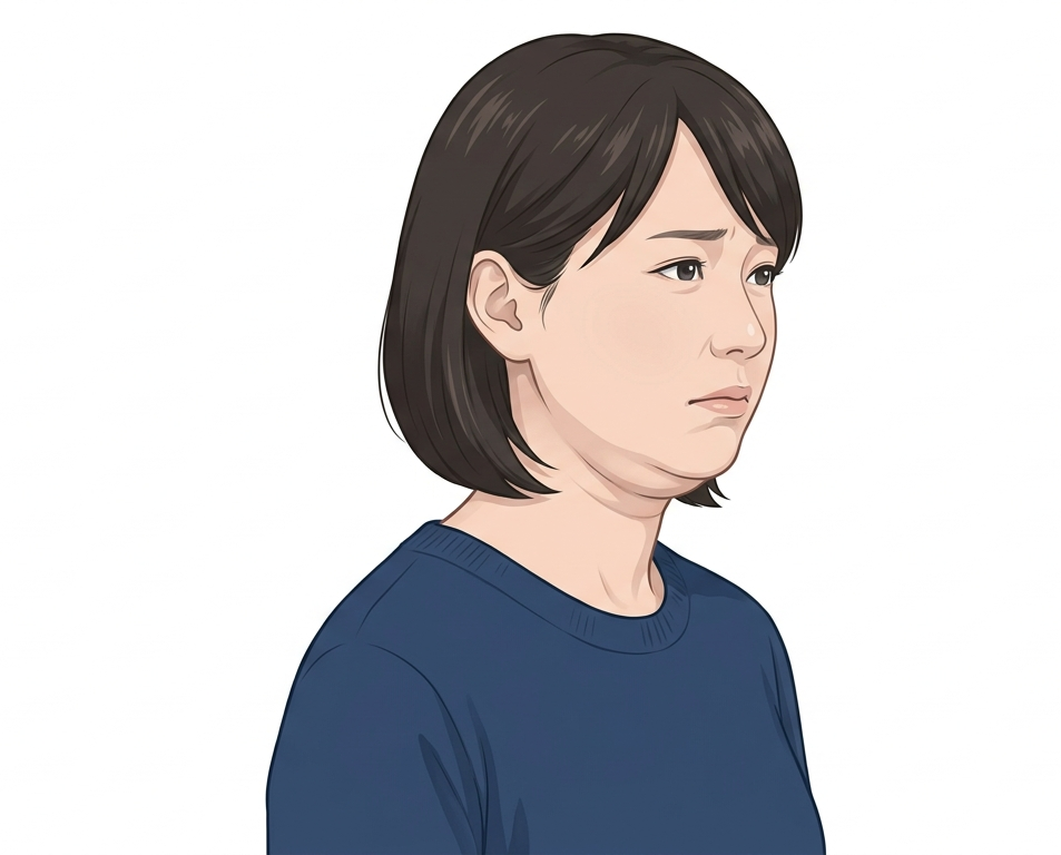 結果: むくみが定着して厚みが増し、あごのラインがぼやけて2重あごを強調してしまいます