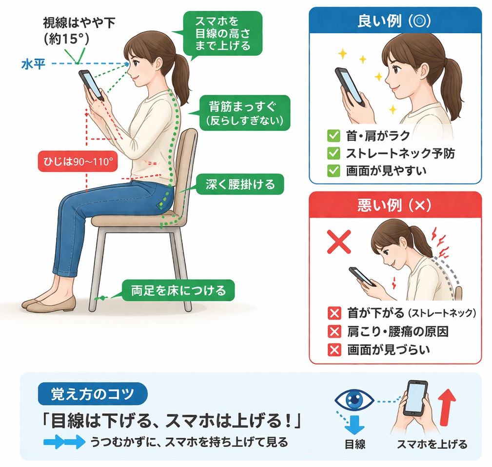 「画面を目線の高さまで上げる」だけで、ストレートネックの悪化はかなり防げます