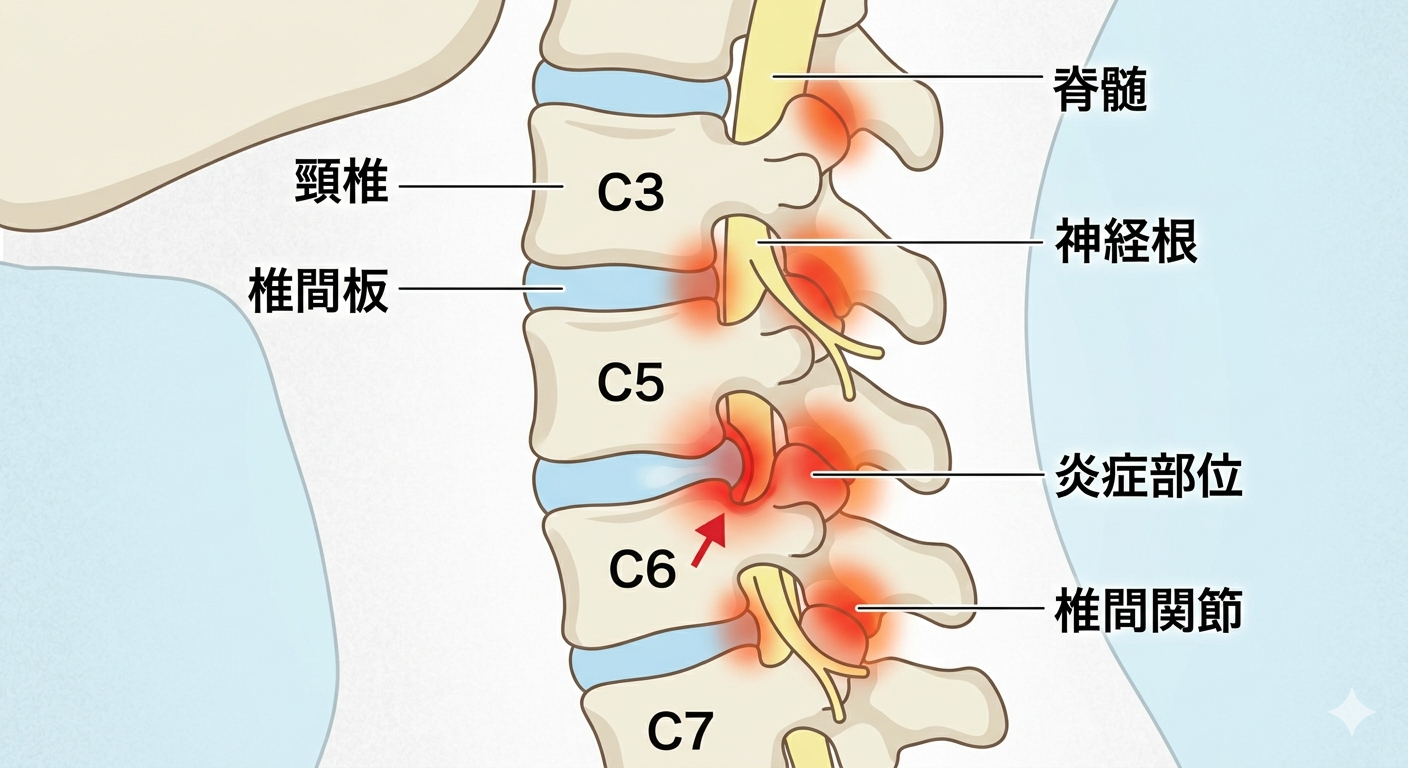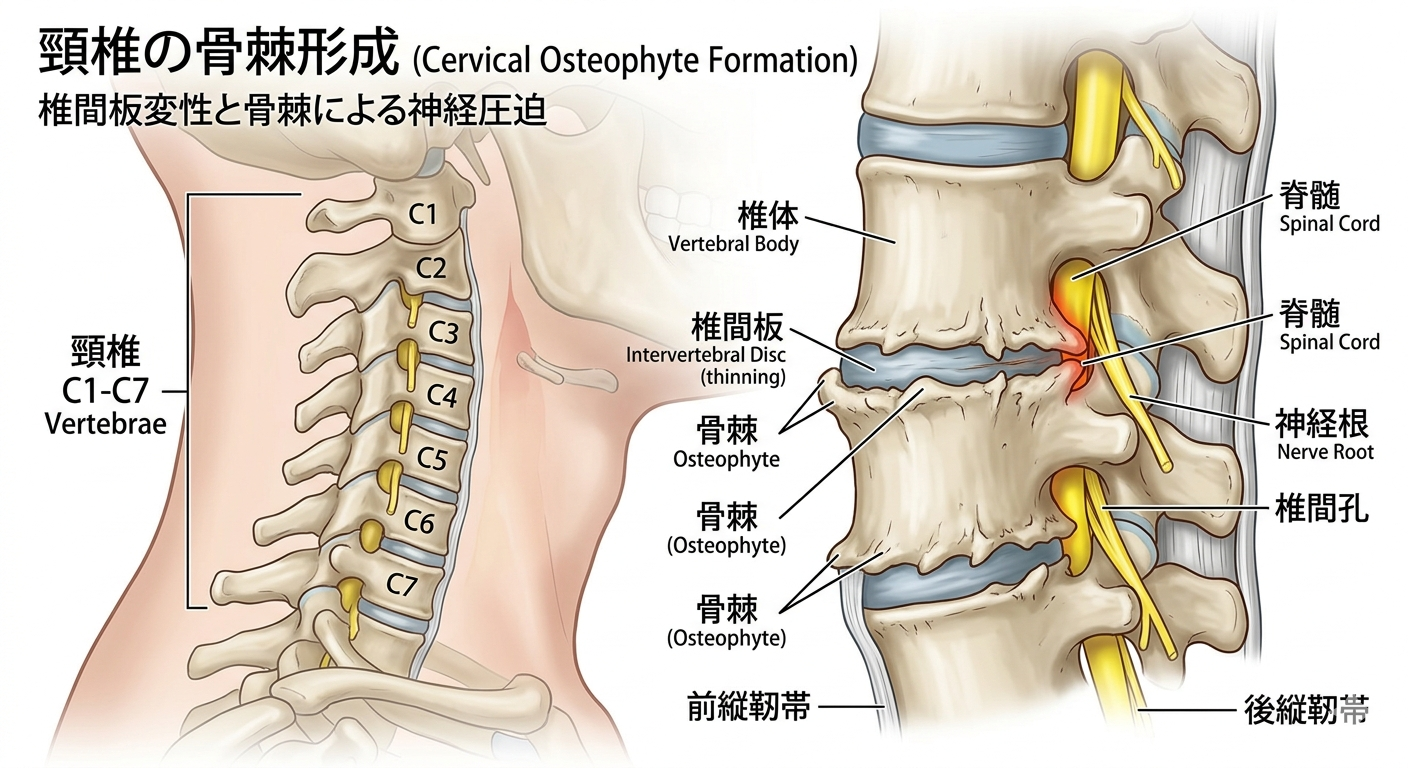 首の骨に炎症の影響で「骨棘」という棘が出てくる