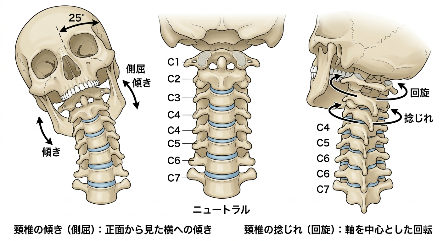 また、首の傾きや捻れがある場合にも関節の動きが制限されます